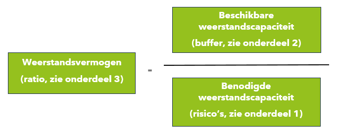 Het weerstandsvermogen is de verhouding tussen de beschikbare weerstandscapaciteit (buffer) en de benodigde weerstandscapaciteit (gekwantificeerde risico's) en wordt uitgedrukt in een verhoudingsgetal (ratio).